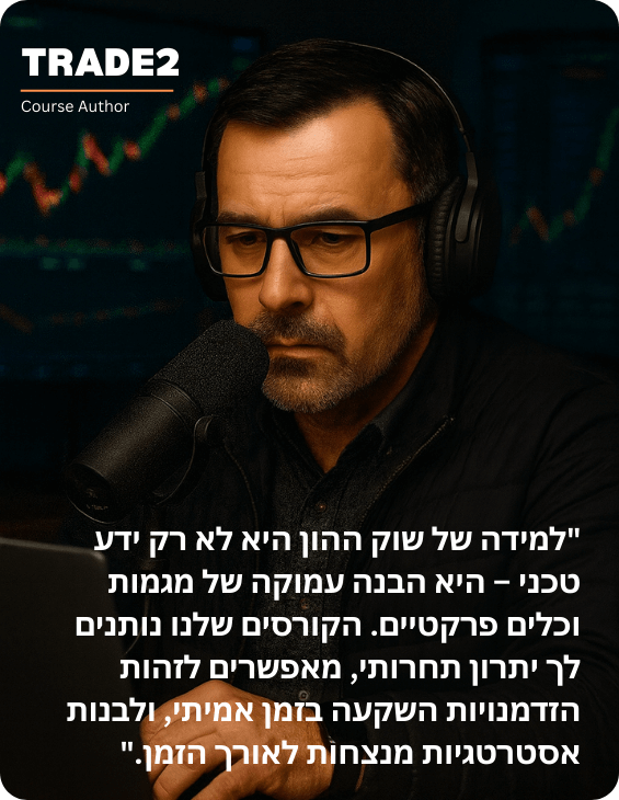כאן נשלב בין יתרון טכנולוגי לבין הבנה עמוקה של השוק, ונבנה יכולת לסחור בצורה שיטתית ומבוססת נתונים – בדיוק כפי שעושים מנהלי קרנות וגופי השקעות גדולים.